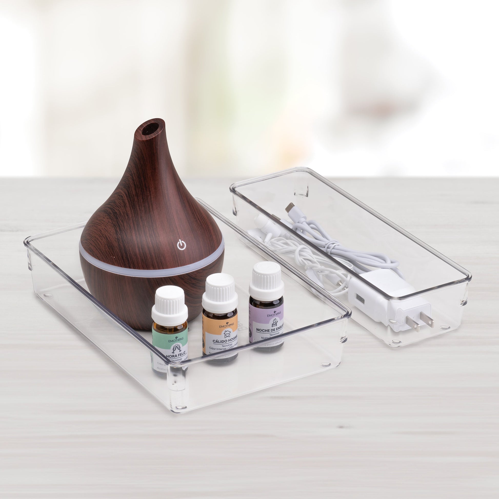 Our 2-Pc Clear Drawer Bin is a great way to tidy up any vanity or cabinet! Store your personal care products, mail, kitchen utensils, and miscellaneous items alike to give any space the gift of organization!