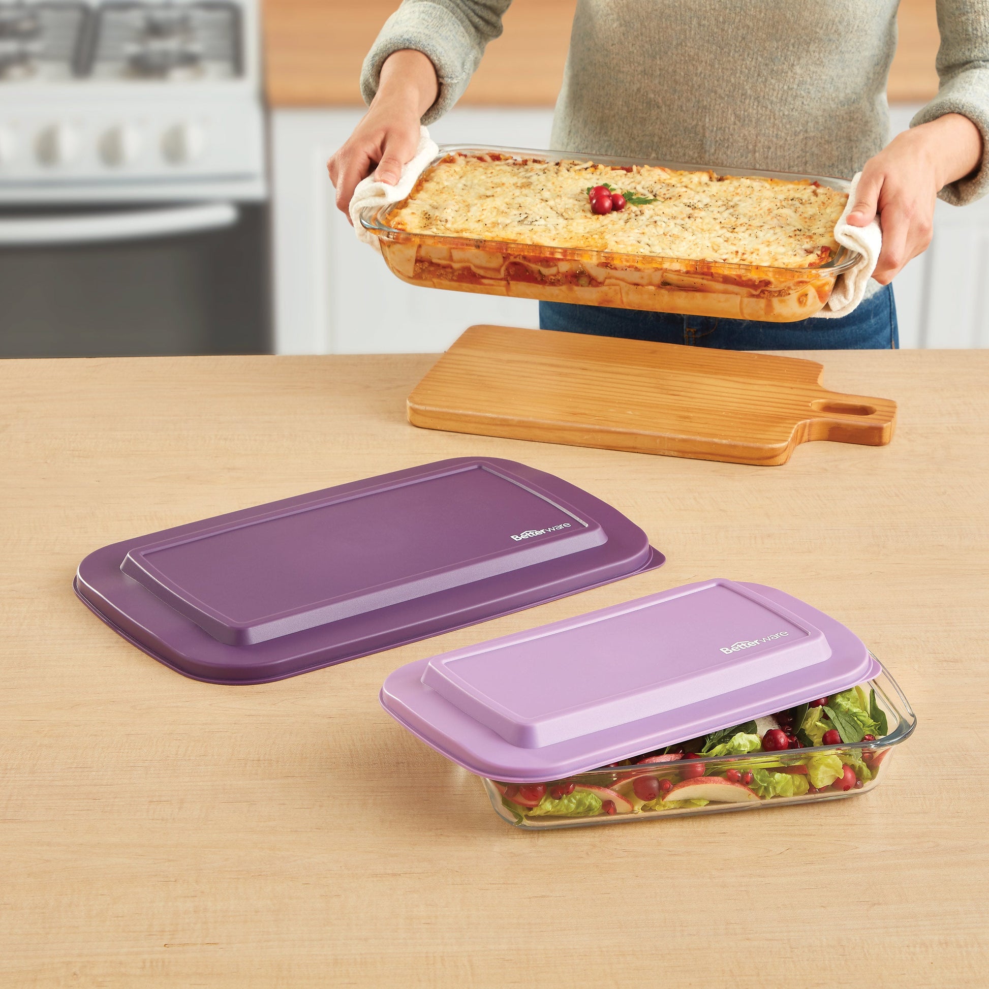 We like to make things better. So, we think you shouldn’t have to look for the aluminum foil after baking a beautiful casserole. Rather, your baking dishes should have lids that allow you to easily store your delicacies or secure them for a little road trip to the potluck without hassle. Our Bake & Store Dish Set is the perfect way to both serve at the table and put away any leftovers stress-free and with style! Perfect for desserts, salads, and one-pan dinners, this set will become your new obsession.