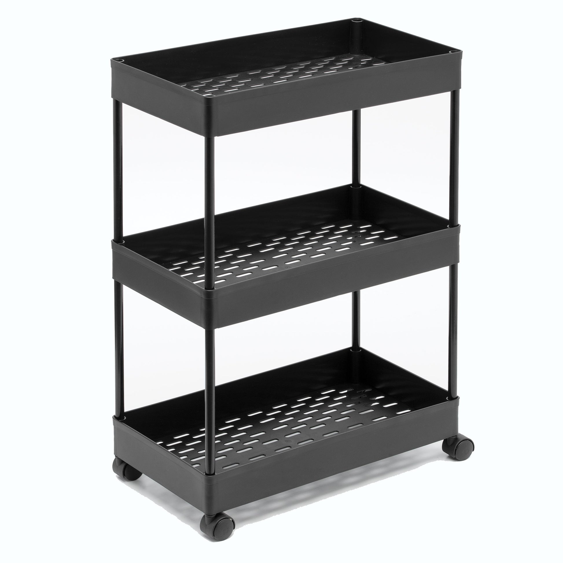 Our Black Storage Cart is a slim organization solution perfect for any area that could use compact and mobile shelving! Use it to store your personal care items in the bathroom, pantry foods in the kitchen, tools in the garage, or your different detergents in the laundry room, and enjoy a more harmonious home!