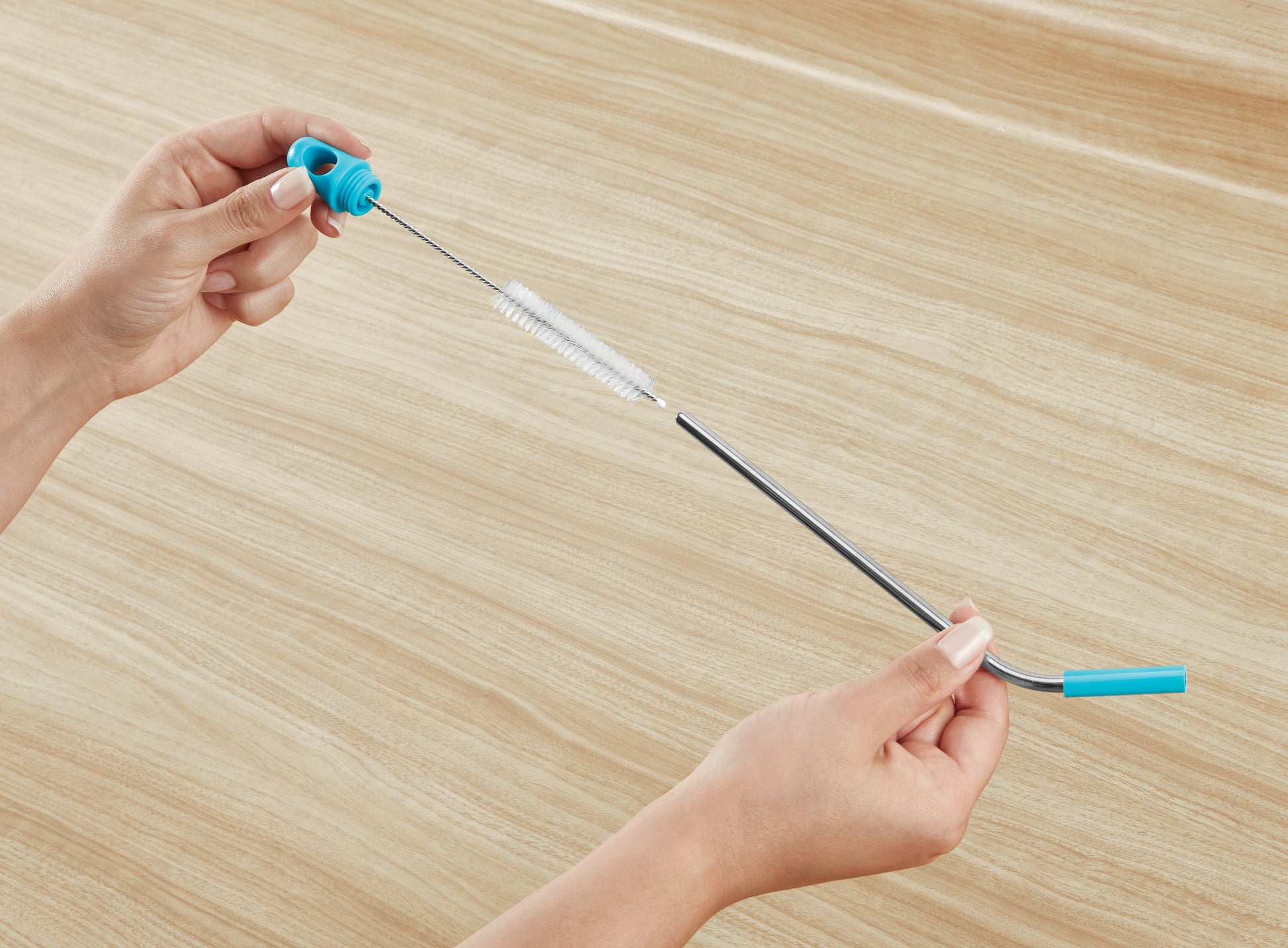 Did you think we’d forget about your straws? Find a nifty straw cleaner by twisting the blue section on the handle.