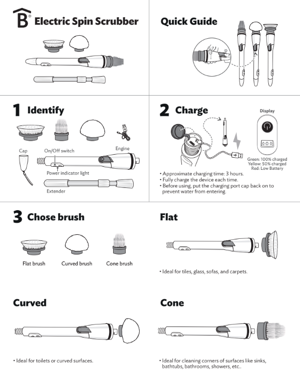 If you are looking for a faster, easier, and more efficient way to get your cleaning on, you are in the right place! Our Electric Spin Scrubber is here to make your surfaces sparkle! Featuring three interchangeable head pieces with different specializations, a wireless design, and a battery life of an hour of continuous use, those pesky tasks that used to take an entire afternoon will be a thing of the past!