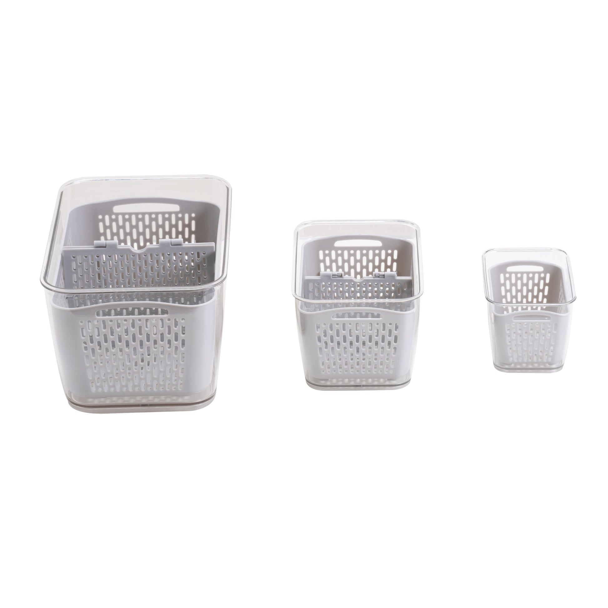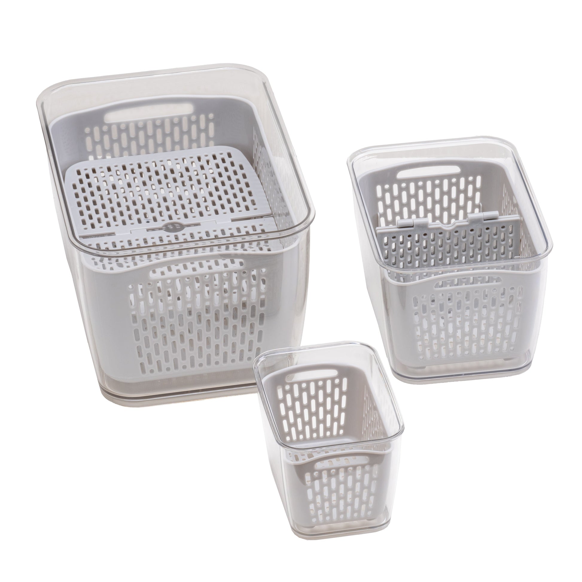 Our small, medium, and large three-piece Fresh Basket Set is here to keep your produce fresh and crisp! With integrated vents on the lids and colander baskets, you can rest assured any unwanted moisture and condensation will stay off your precious strawberries so they last a little longer! Use the baskets to rinse and drain your fruits and vegetables, and the containers to store them in the fridge! You’ll love that this set includes two dividers that you can place either vertically or horizontally to keep different items in their own compartment.