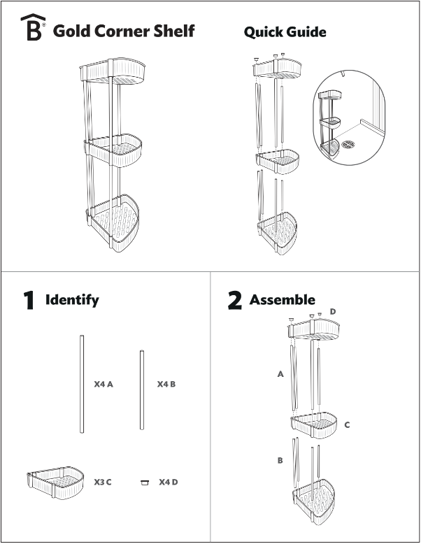 Showcasing golden stainless-steel accents, our Gold Corner Shelf will help you organize your personal hygiene products more efficiently and in style! With an elegant and space-saving design, this bathroom solution will transform your shower into a tidy and sophisticated sanctuary.